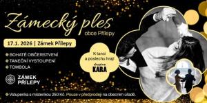 Obec Přílepy zve na Zámecký ples, který se bude konat v sobotu 17. ledna 2026 od 20 hodin. Lístky pouze v předprodeji na Obecním úřadu Přílepy nebo na e-mailu obec@prilepy.cz.