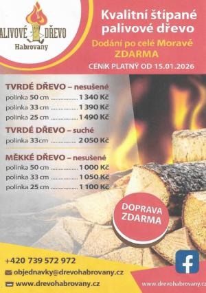 Firma Palivové dřevo Habrovany nabízí občanům dodání štípaného palivového dřeva, tvrdého i měkkého a také suchého, s dopravou zdarma a rychlým dodáním až domů. Objednávejte na telefonním čísle 739 572 972 nebo na internetových stránkách www.drevohabrovany.cz.