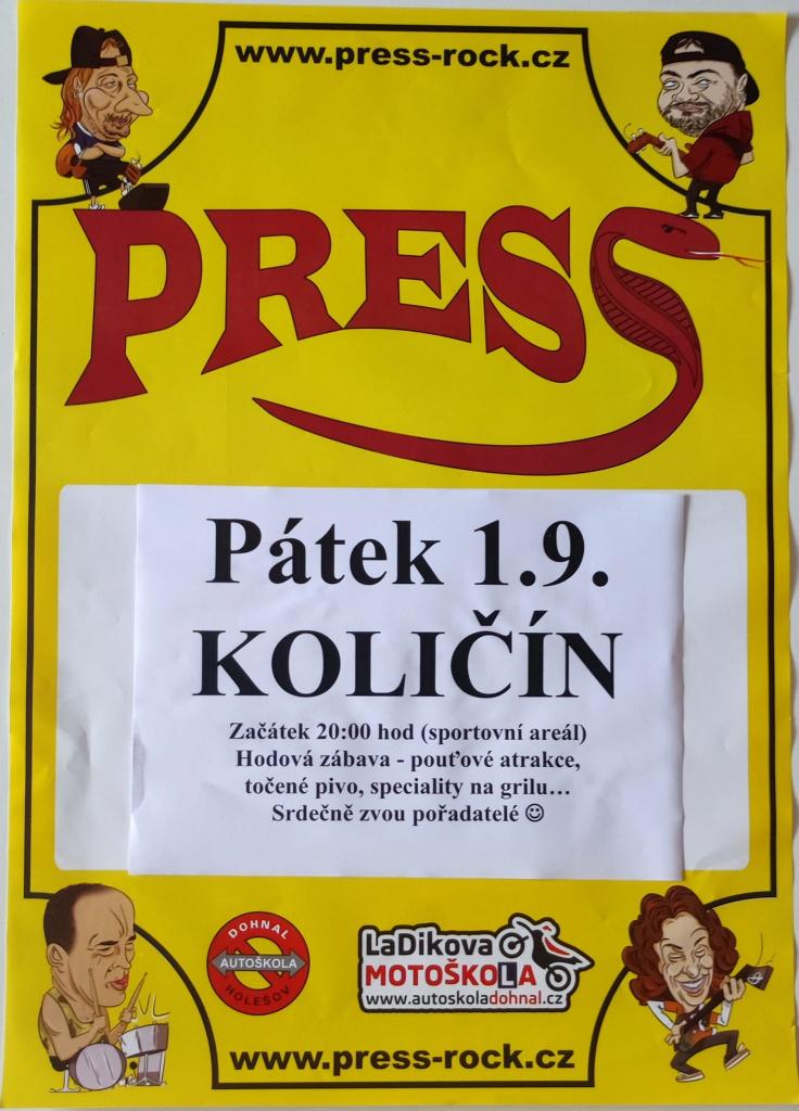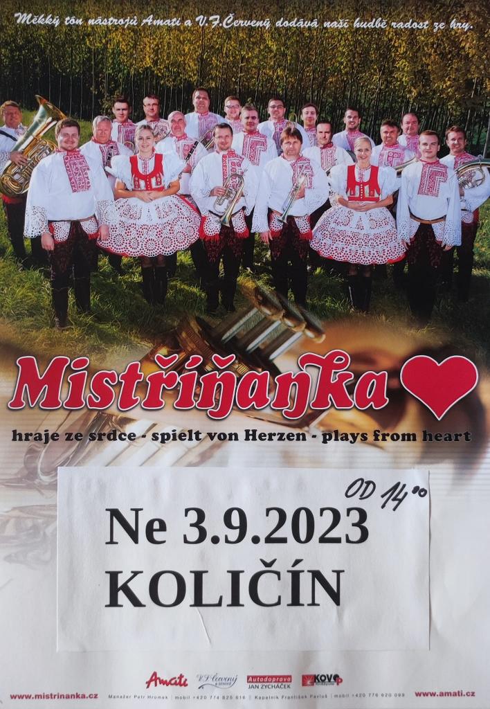 1.9. Hodová zábava Količín - Press-rock 2.9. Dožínky Mikroregionu Holešovsko 3.9. Mistříňanka Količín 9.9. Traktoriáda Jankovice 16.9. Míškovský bazárek 16.9. Rymické kotlék 23.9. Bazárek kostýmů a oblečení Ludslavice