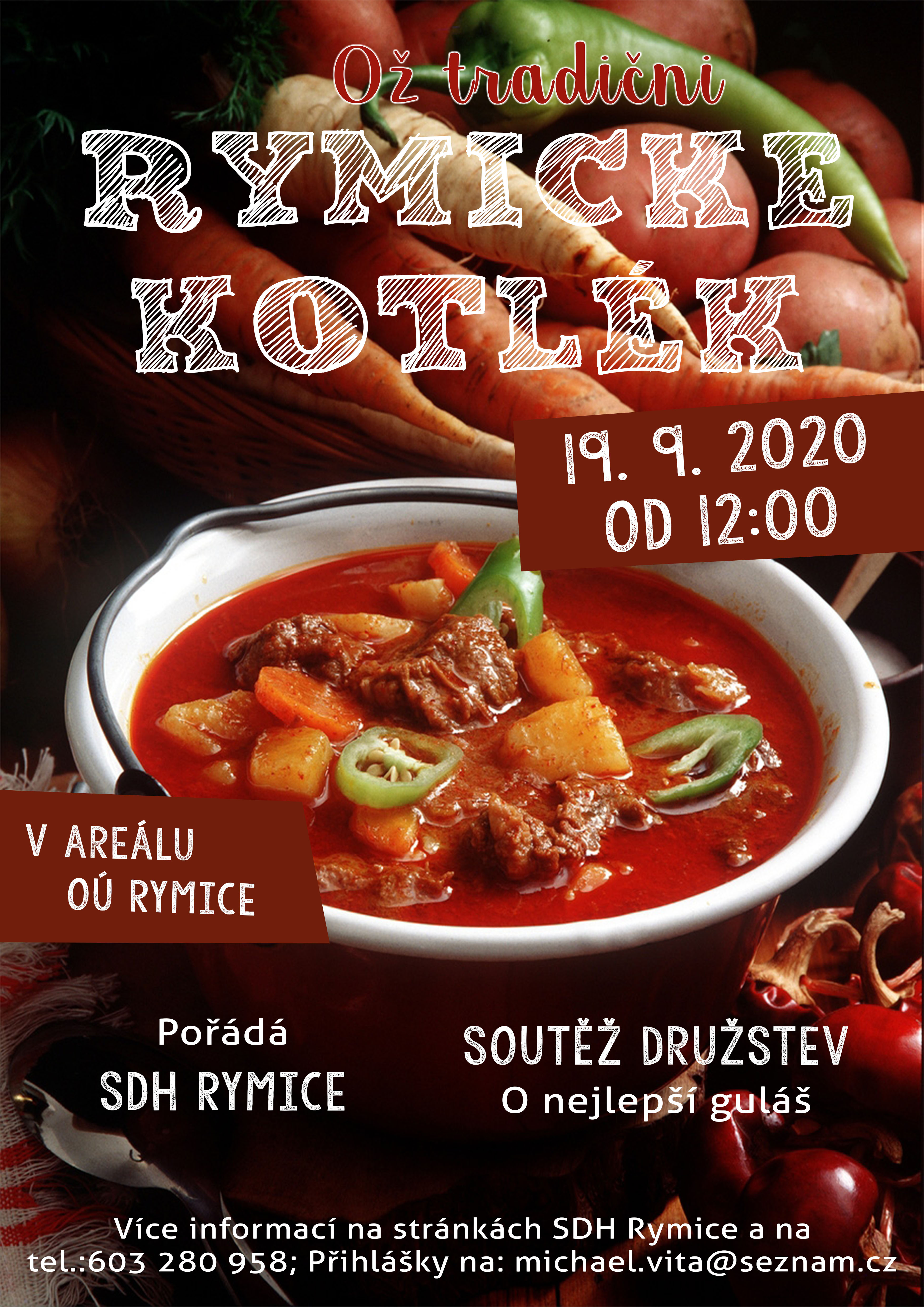 19.9.2020 od 12.00 v areálu OÚ Rymice-Soutěž družstev o nejlepší guláš