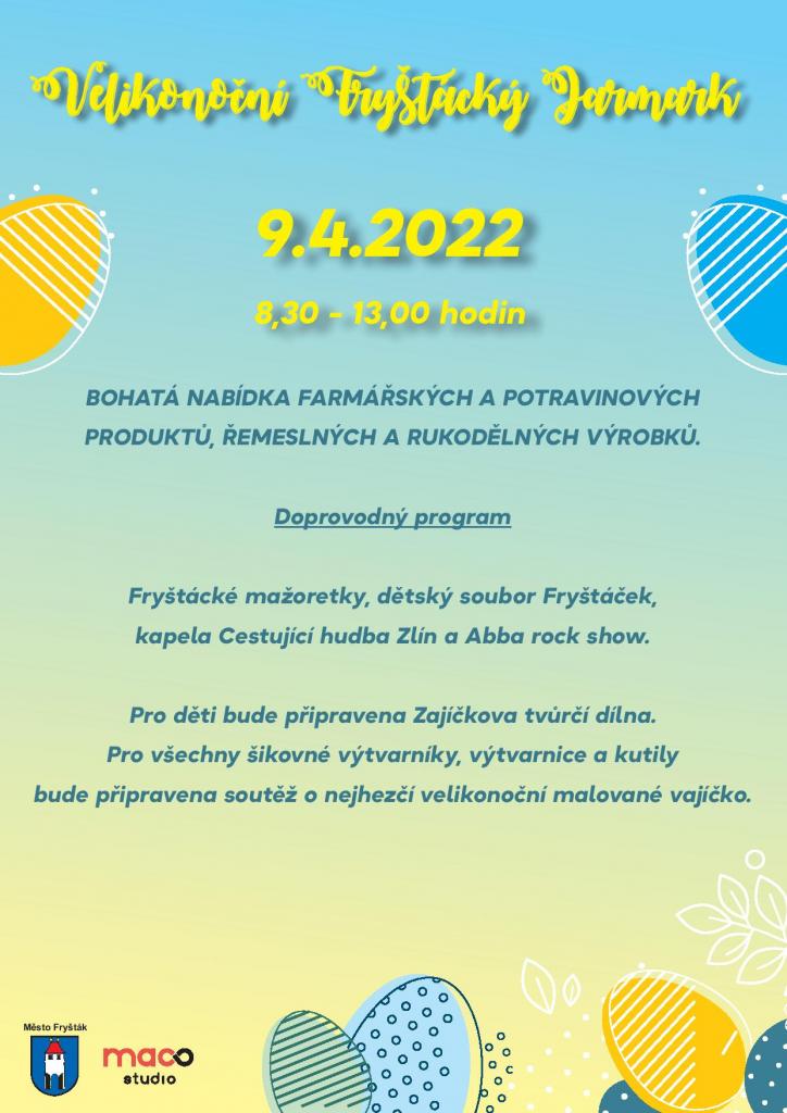 Sobota 9. 4. 2022, 8.30 - 13.00 hod. BOHATÁ NABÍDKA FARMÁŘSKÝCH A POTRAVINOVÝCH PRODUKTŮ, ŘEMESLNÝCH A RUKODĚLNÝCH VÝROBKŮ.