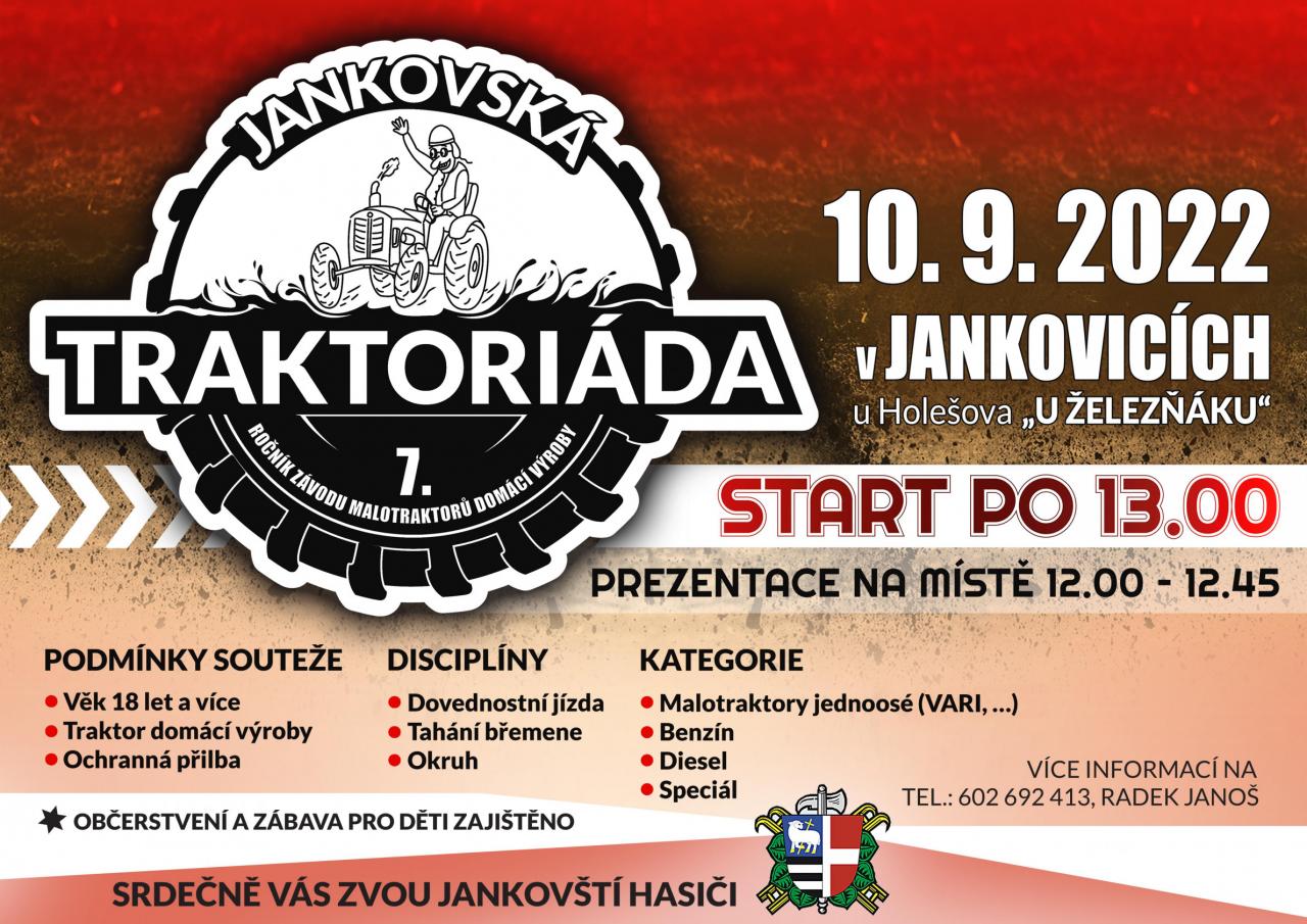 7. ročník závodu malotraktorů domácí výroby 10. 9. 2022 od 13.00 hod. Jankovice