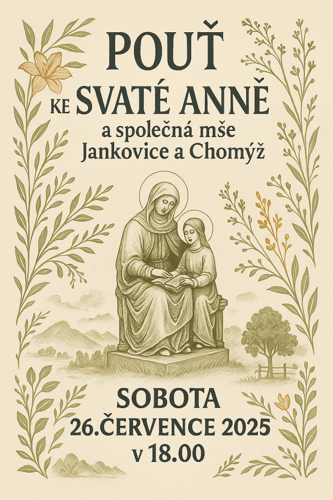 26.7. Divadelní představení Jankovice 26.7. Pouť ke sv. Anně 26.-27.7. Mezinárodní výstava mečíků Valašské Meziříčí 27.7. Farní den Holešov