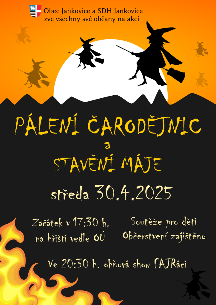 · 30. 4. 2025 – Pálení čarodějnic a stavění máje – Jankovice