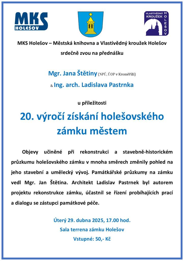 · 29. 4. 2025 – Přednáška ke 20. výročí získání holešovského zámku městem - Holešov
