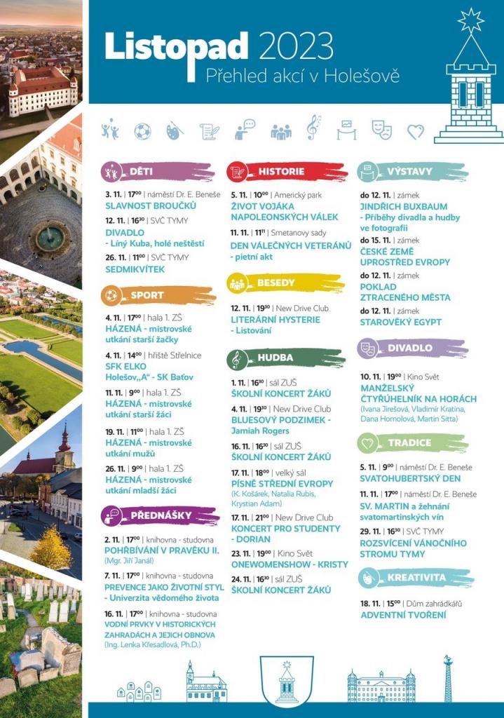 5. 11. Svatohubertský den Holešov 11. 11. Den válečných veteránů a Žehnání svatomartinských vín Holešov Souhrnný seznam akcí Holešov - Listopad 2023