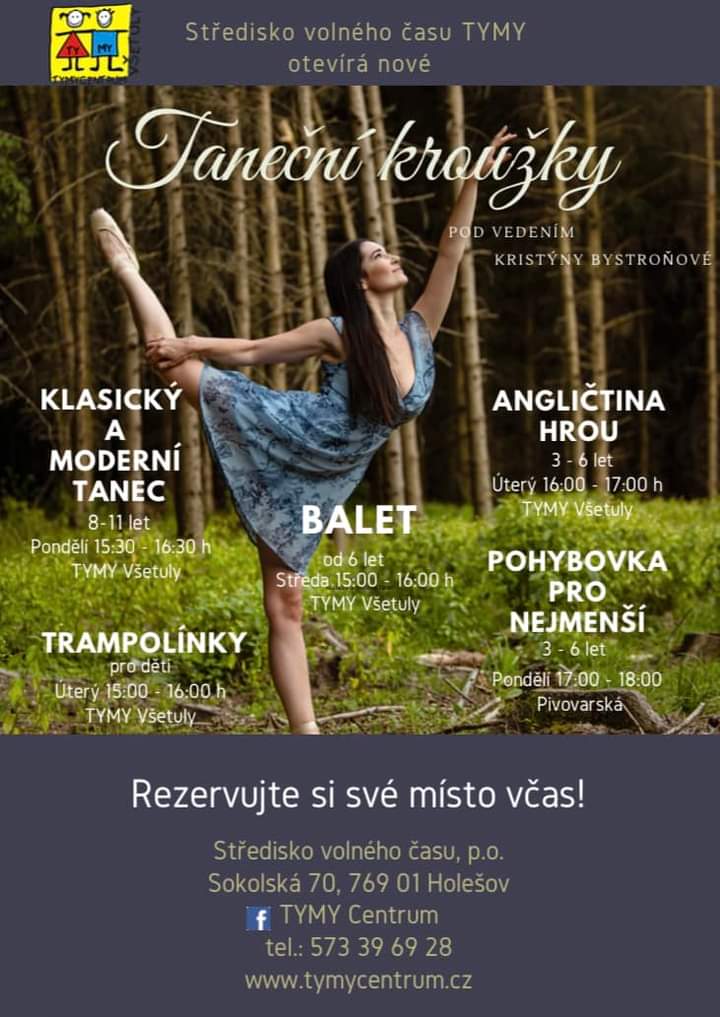 Taneční kroužky - klasický, moderní tanec, balet Pohybovka pro nejmenší, Trampolínky Angličtina hrou